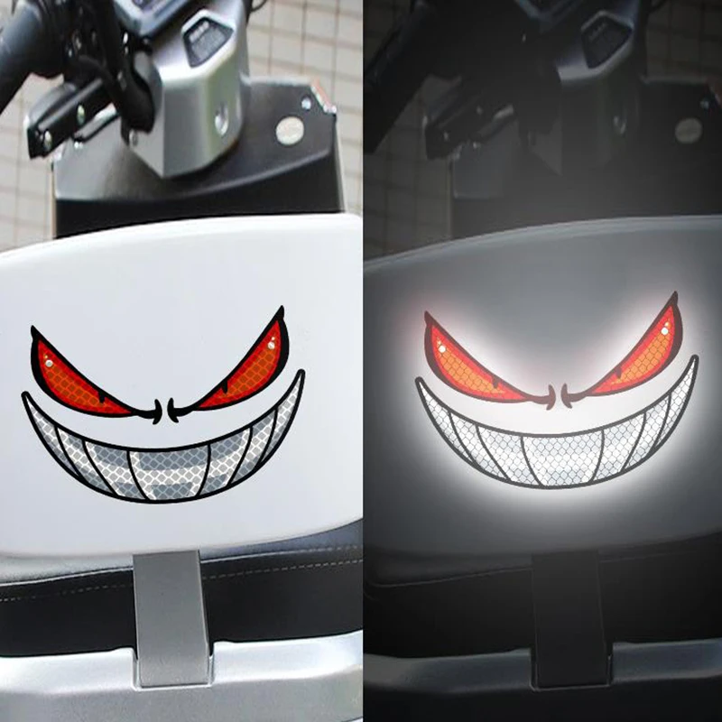 Devil Eye Reflective Motorcycle Safety Warning Stickers Decor Moto Bike Scooter Body Windshield Helmet Tailbox Decal Accessories